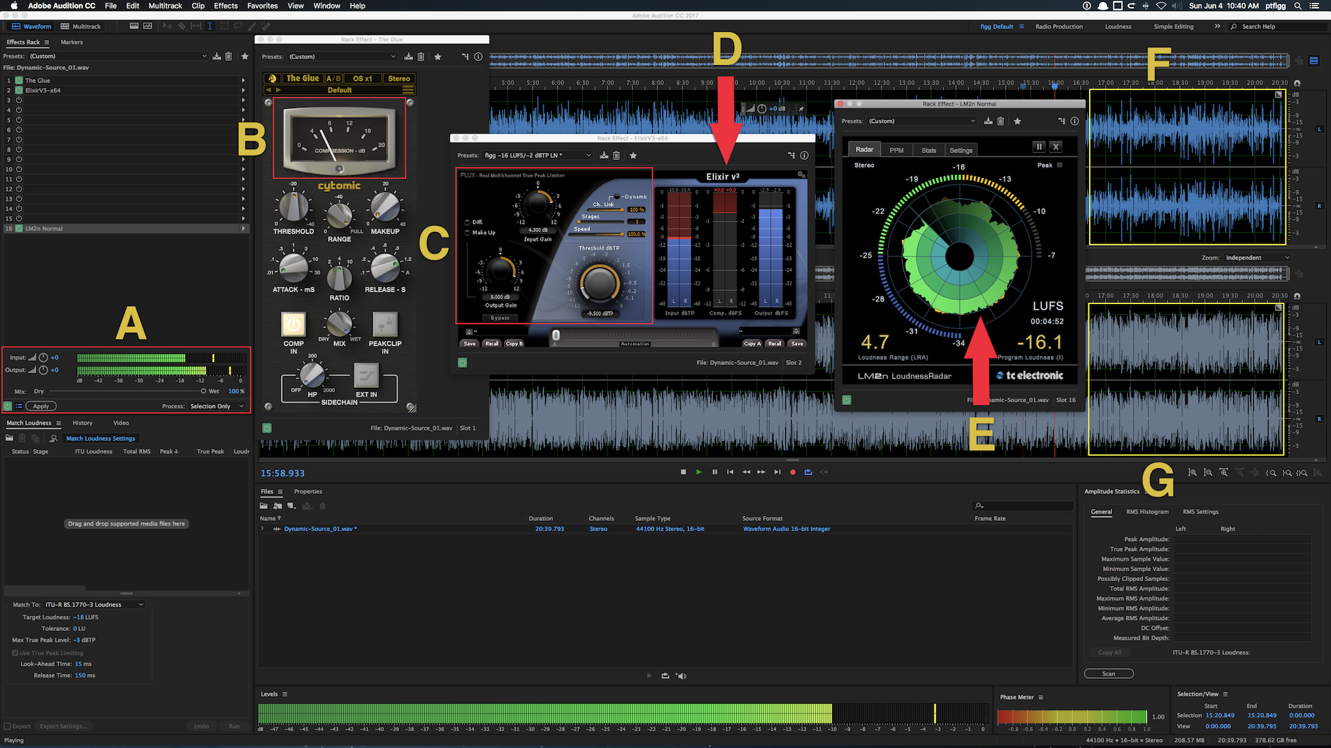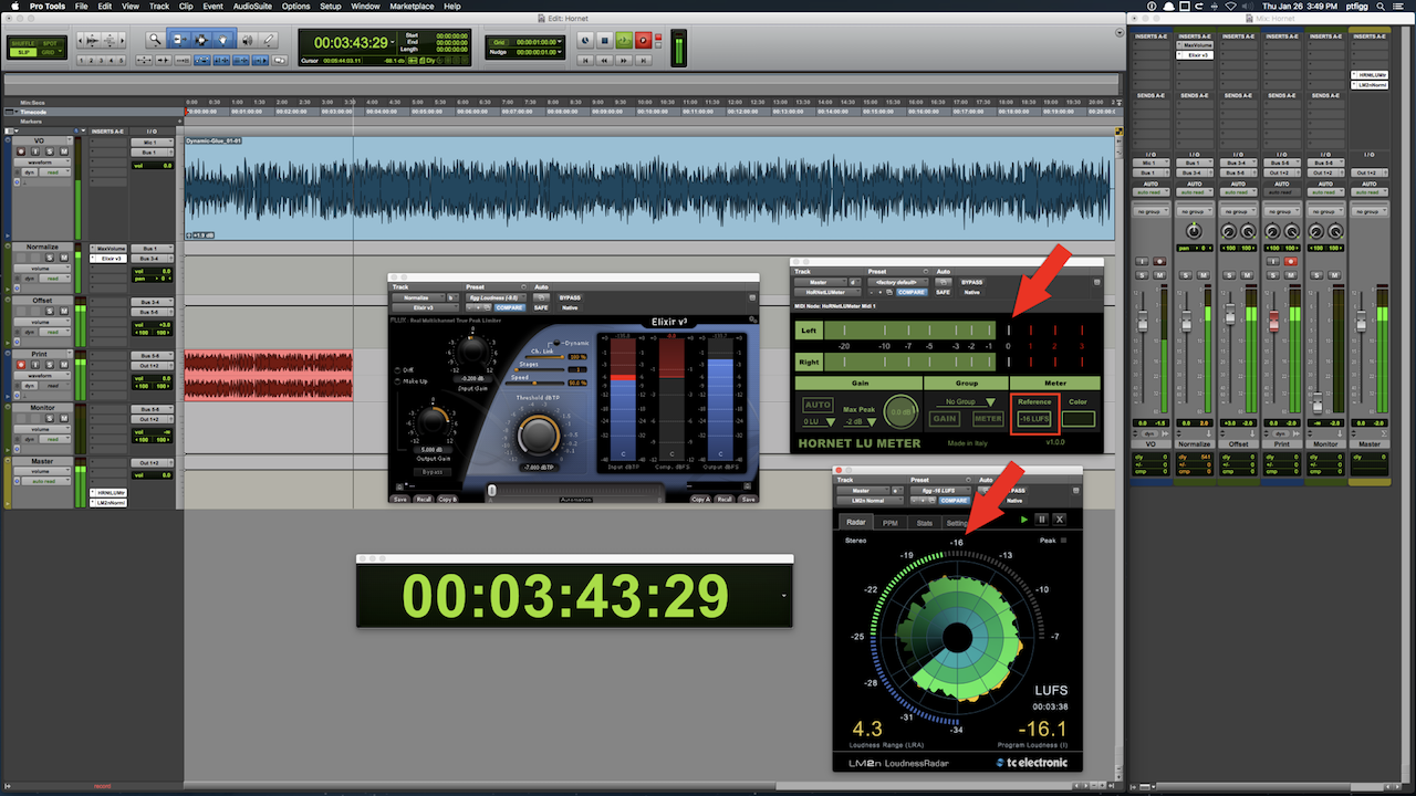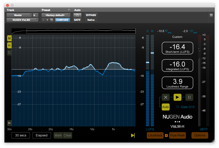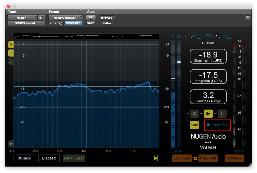 The Inserts located on the Master Fader are post fader. Here I’ve inserted the Clarity M routing plugin. This passes the signal to an external (hardware) Loudness Meter via USB.